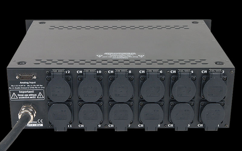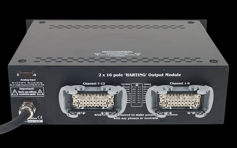 Der Pegasus Master 12x 2,3 kW ist erhältlich mit 12 Schukosteckdosen oder mit 2x 16-Pol Hartingausgang. Der Pegasus Master 6x 5 W ist mit 2x 6-Pol Hartingausgang bestückt.